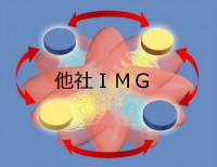 2つの異なる治療波で変調した波形を、青、黄それぞれの導子から体内へ流します。2種類の刺激感覚によって、新しい第3の刺激感が得られるモードです。