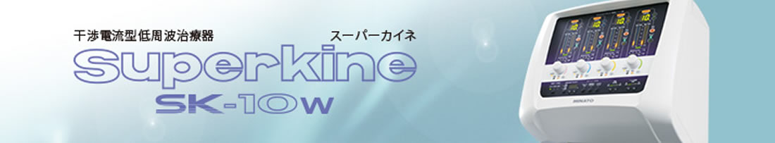 スーパーカイネSK-10Wは、4つのチャンネルを搭載し、4人同時の治療が可能な干渉電流型低周波治療器です。軽量化されたスリムフィット導子と、チャンネルごとに独立したポンプは吸引の負荷を軽減。導子を心地よく暖める大型保温導子プレートなど、快適性を追求した機能をコンパクトなボディに凝縮。安全性や操作性に配慮した機能を充実し、患者様にもスタッフにもやさしい干渉低周波治療をご提供します。