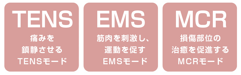 - 3つの電気刺激モードで、鎮痛から治癒の促進まで幅広く対応